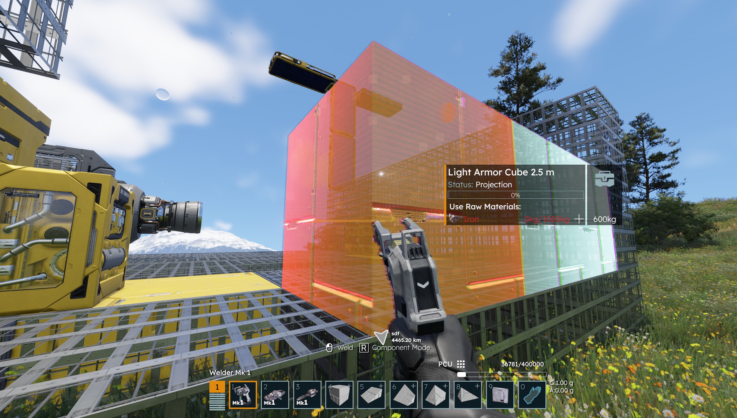 placed blocks from right to left from the wall that the batteries touch, left most block shows no connection and cannot be welded until blocks on the right are welded first, despite there being a layer of blocks directly under these placed block projections.