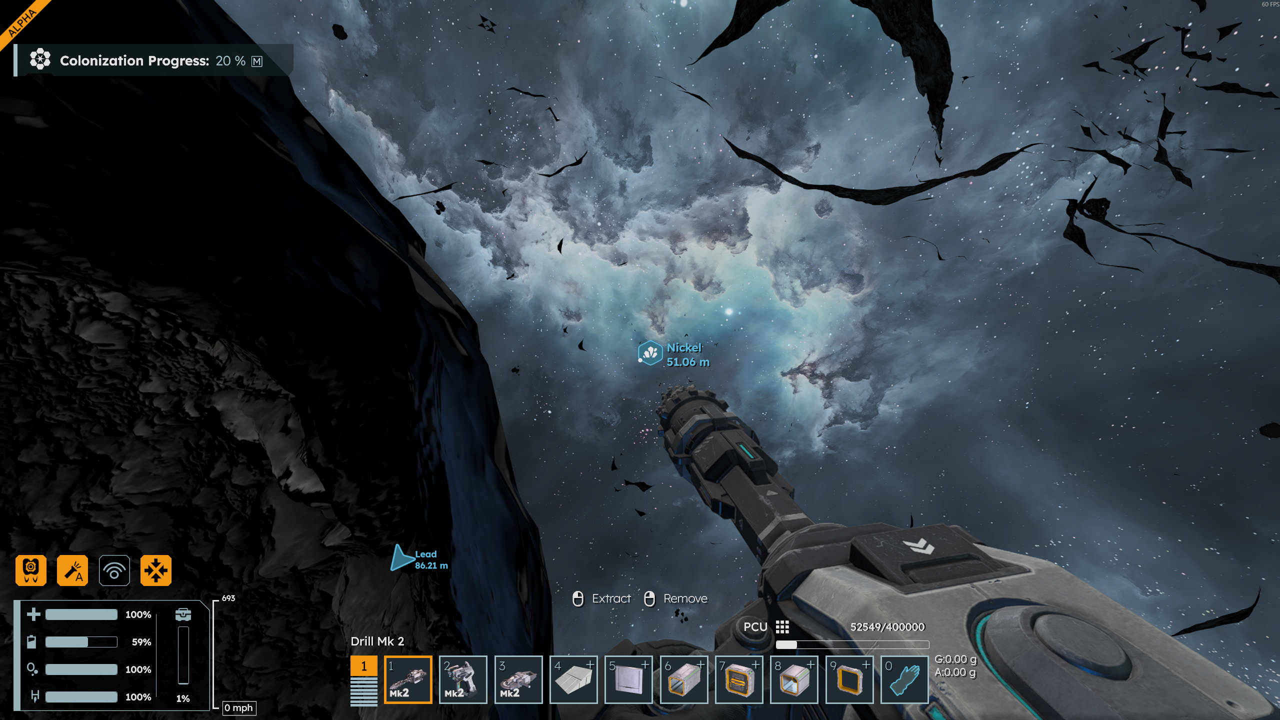 I was mining into an asteroid to aquire a Nickel deposit when I hit a spot where I was was no longer able to mine. By this, I mean my hand held drill was not making contact with the asteroid wall. When I moved closer to the wall to see if I could find a spot to make contact, I clip through the asteroid. Screen shot is attached for reference.