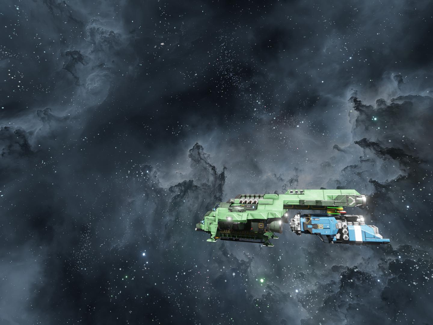 1. Dock two ships together. Ideally of near equal mass.