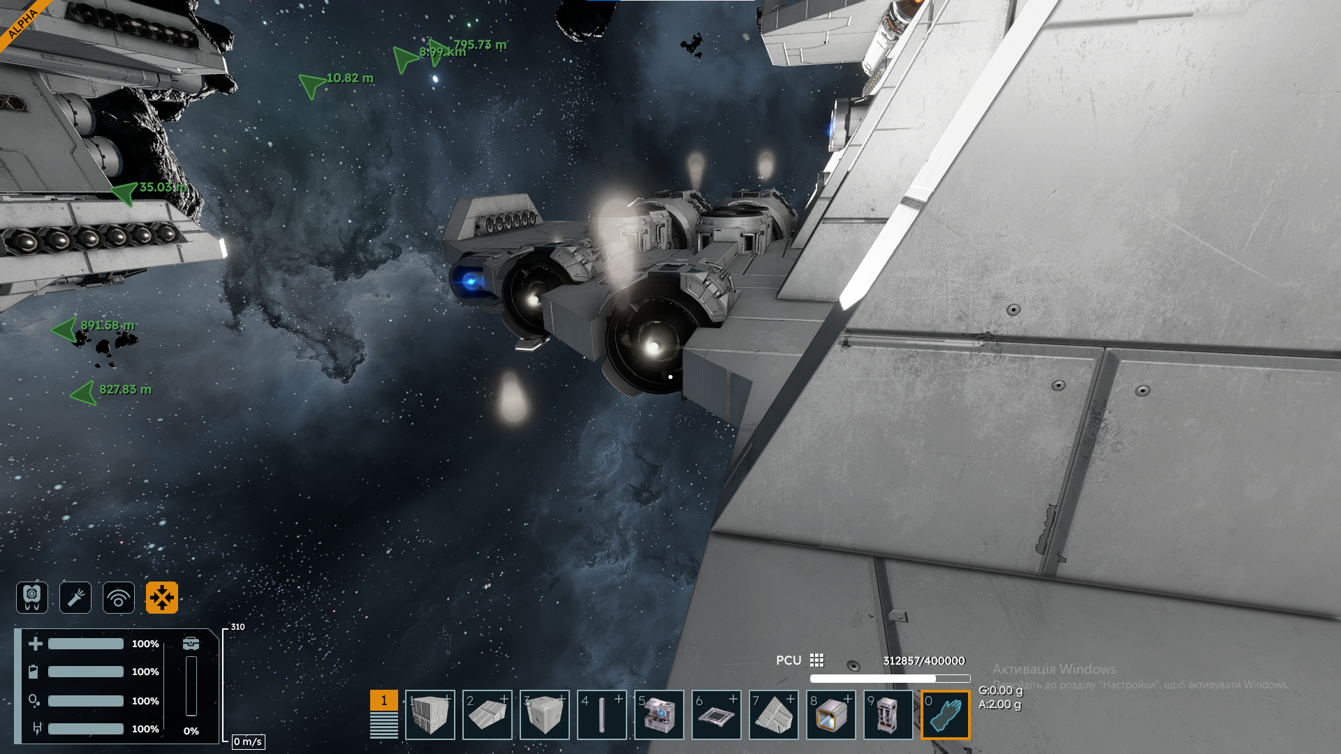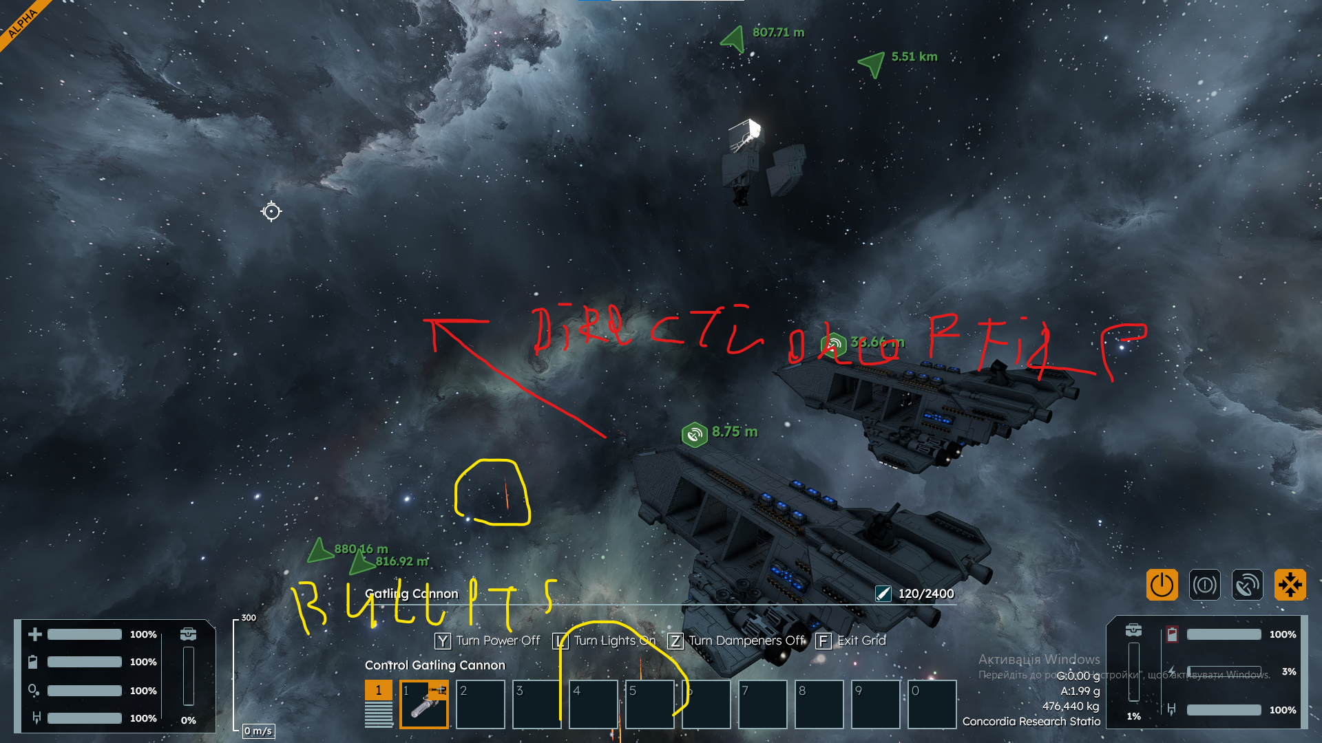 Thrusters are on Idle, I just pasted two of my new ships into the "Concordia resaearch facility" world. Attaching screenshot below.