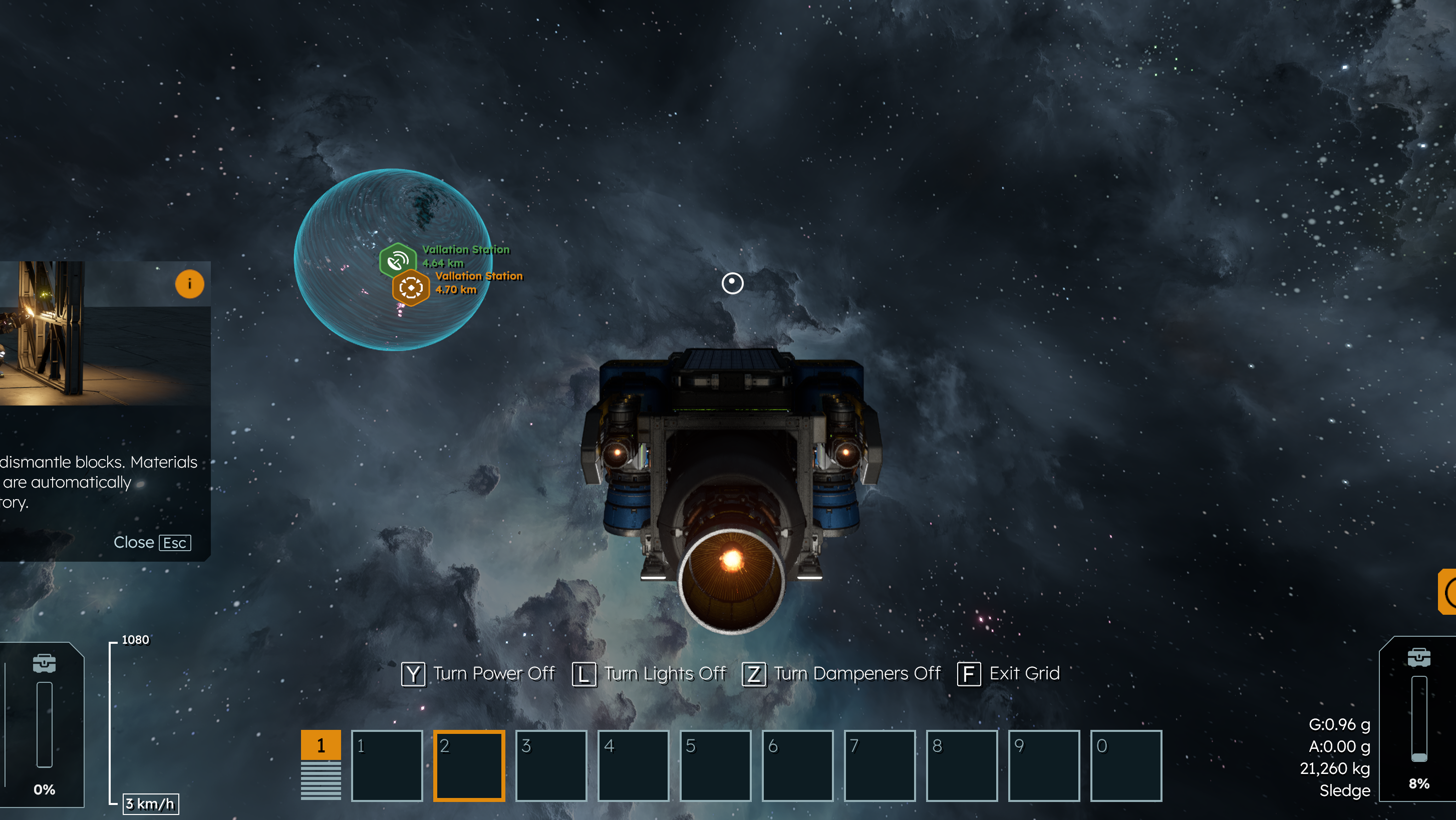 I was leaving the planet Verdure for the first time during the tutorial missions, and I noticed as I was nearing Vallation Station that the gravity is still listed as 0.96g when it should be nearing zero. I happened to glance down to determine when I could stop thrusting and noticed the value was off. See attached screenshot.
