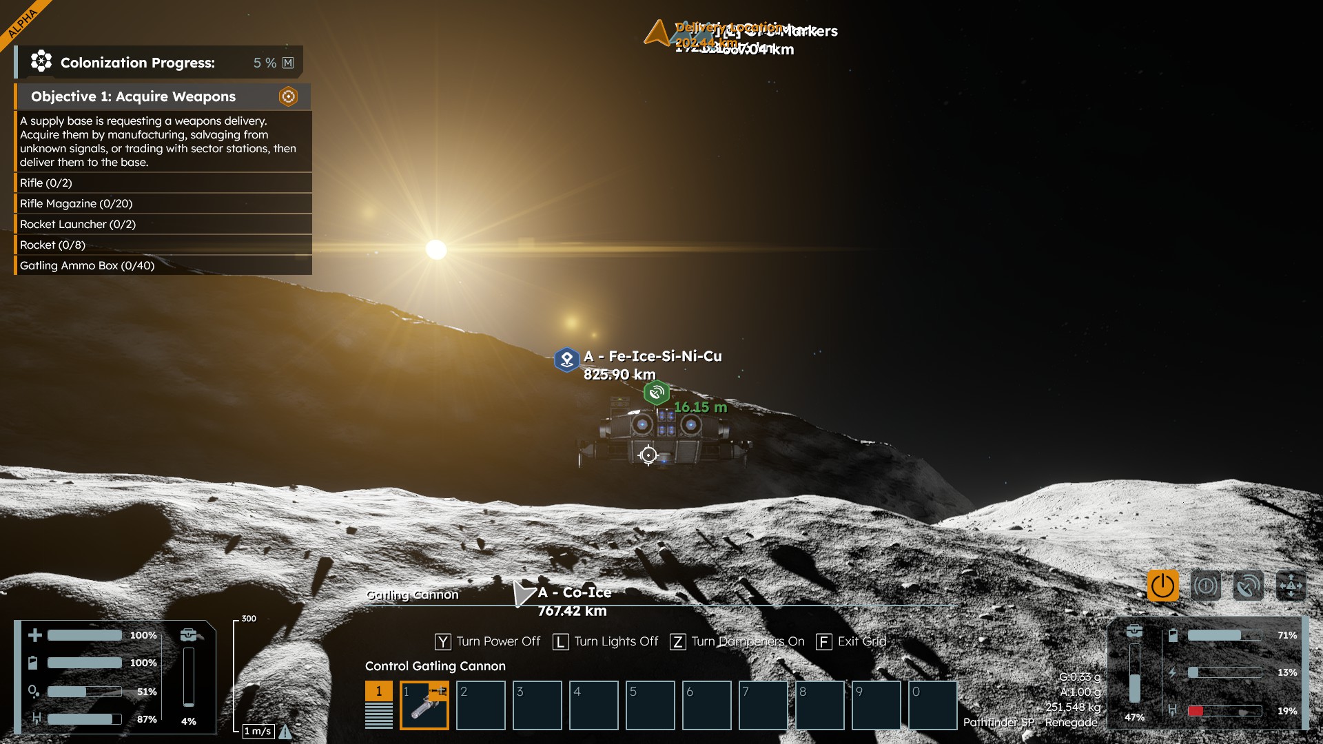 I have finally made it to Palatine, and am flying an ion thruster-only ship I liberated from the NPCs. I was flying low to the ground but definitely clear from it, and suddenly the front end of my ship exploded. I reloaded a save game to check, and noticed that if I am close to the ground anywhere, my ship impacts/floats on invisible voxels, even with dampeners off. I turned on debug mode to see if I could make the invisible voxels have an outline or something, but it didn't work, so my attached save game will say it has debug menu enabled.