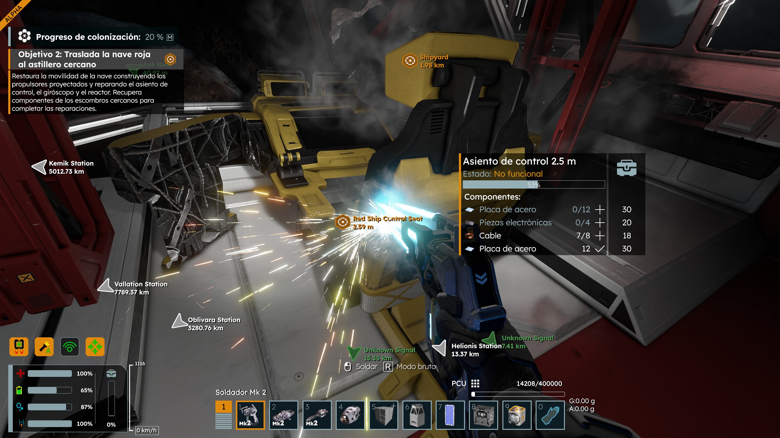 Hola, Al restaurar la nave roja en una de las misiones de supervivencia el juego se bloquea, no recuerdo bien como se llama la misión pero es en la que dicen que dos facciones se enfrentaron y debes restaurar la nave roja para llevarla al astillero y analizar lo ocurrido, concretamente el fallo ocurre al restaurar con el soldador el asiento de vuelo.