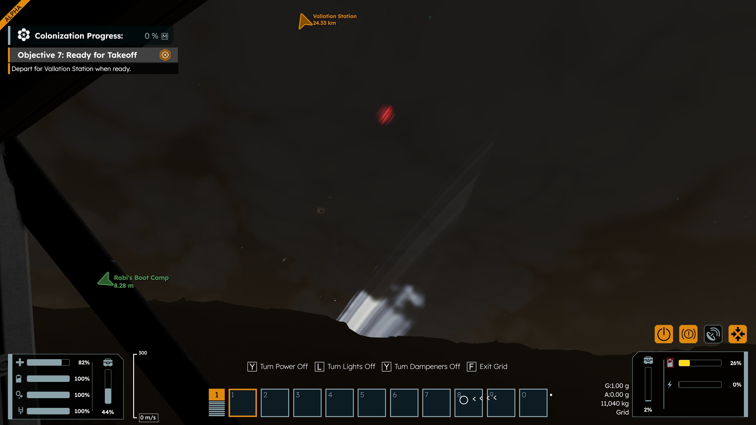 When pressing Y, the dampeners are switched on and off. Pressing Z switches power on and off.